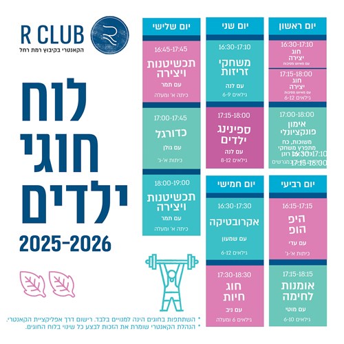 * הנהלת הקאנטרי שומרת את הזכות לבצע שינויים בלוח החוגים.